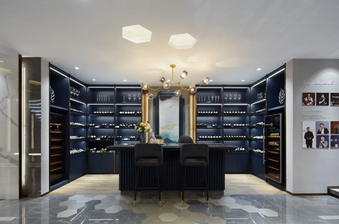 一層綜合展示區以及實景樣間,在呈現產品多樣性的同時,也讓客戶對于產品有所見即所得的購買體驗。設計師沙龍區將設計區與紅酒吧融入結合,讓設計師能更輕松愉快地交流、洽談。兒童娛樂區配備泡泡池,并以水刀切割工藝拼貼的卡通圖案作為裝飾背景,讓帶小孩的客戶能安心地體驗購物。通過光影與造型處理,精致、設計感十足的樓梯空間連著一層與夾層,讓客人有更上一層樓的探索欲望。